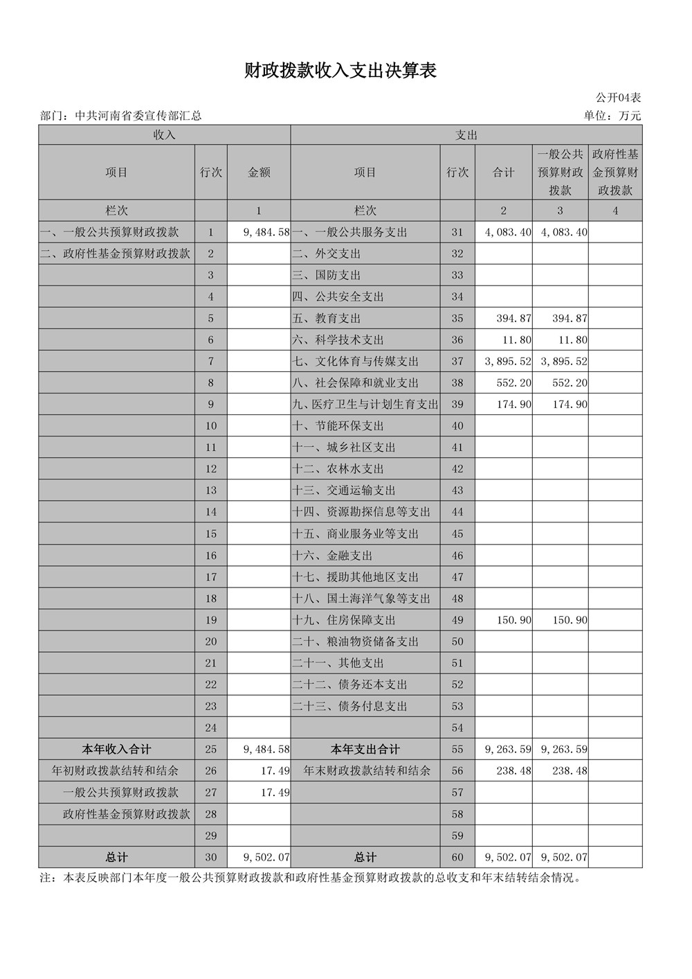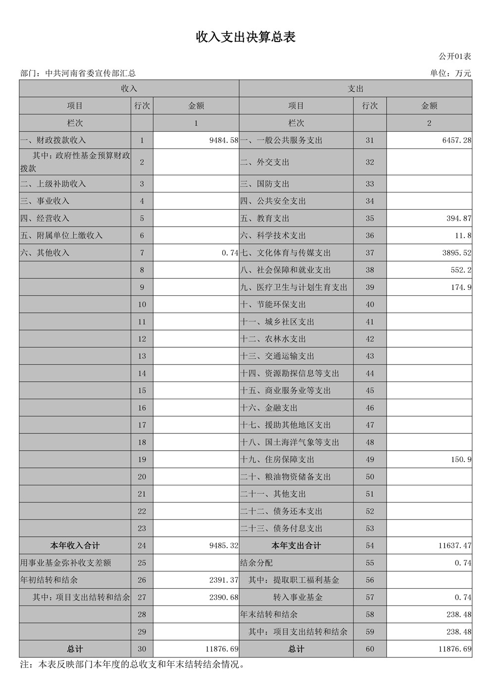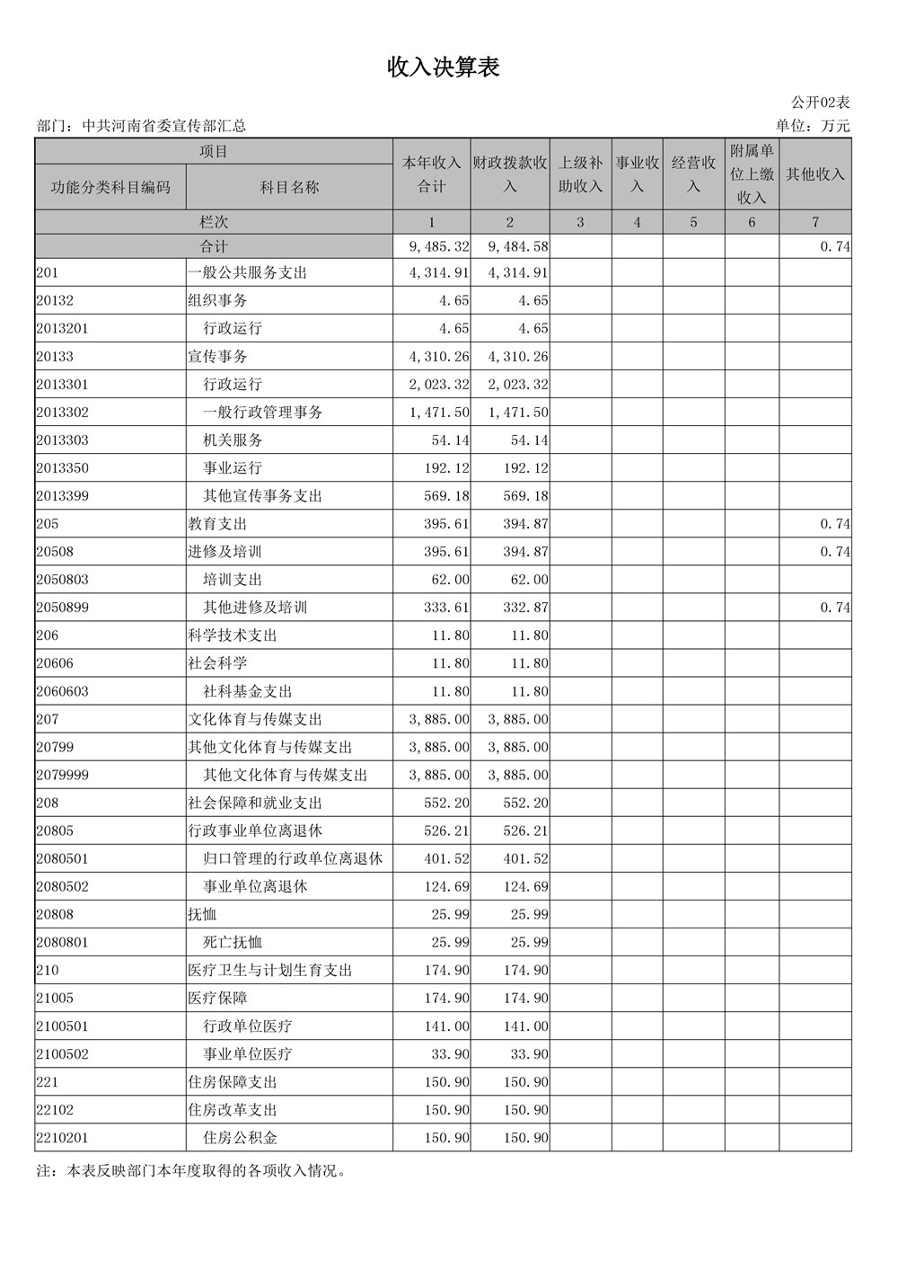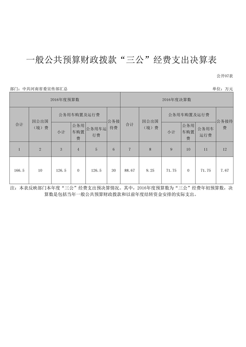 2016年度河南省委宣傳部部門(mén)決算公開(kāi)