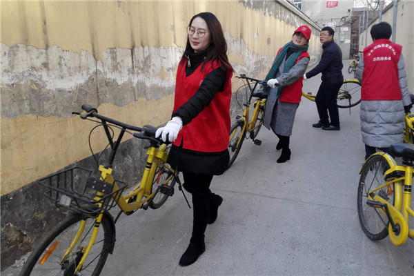 志愿者們冒著寒風(fēng)和低溫,清理家屬院里違規(guī)停放小黃車,并引導(dǎo)社區(qū)居民講文明、樹新風(fēng),養(yǎng)成良好的行為習(xí)慣。經(jīng)過一個(gè)多小時(shí)的勞動(dòng),雖然手都凍紅了,但看到近百輛擺放的整整齊齊的單車和井然有序的院子,大家都有滿滿的成就感,也體會(huì)到了奉獻(xiàn)的快樂。