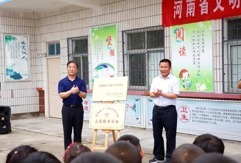 7月11日,河南省委宣傳部常務副部長蘇長青、副部長張曼如、省文明辦專職副主任王飛等同志帶領部機關(guān)有關(guān)人員,與鄭州航空管理學院有關(guān)領導和志愿者師生一行,分別到省委宣傳部幫扶貧困村周口市西華縣半截樓村和漯河市舞陽縣余莊村,為省文明辦、鄭州航院援建的航空科普館和鄭州航院志愿服務基地舉行揭牌儀式。